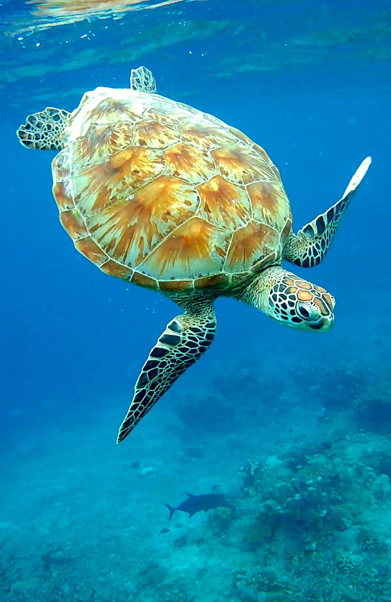 While snorkeling around Sipadan I met this beautiful green sea turtle.