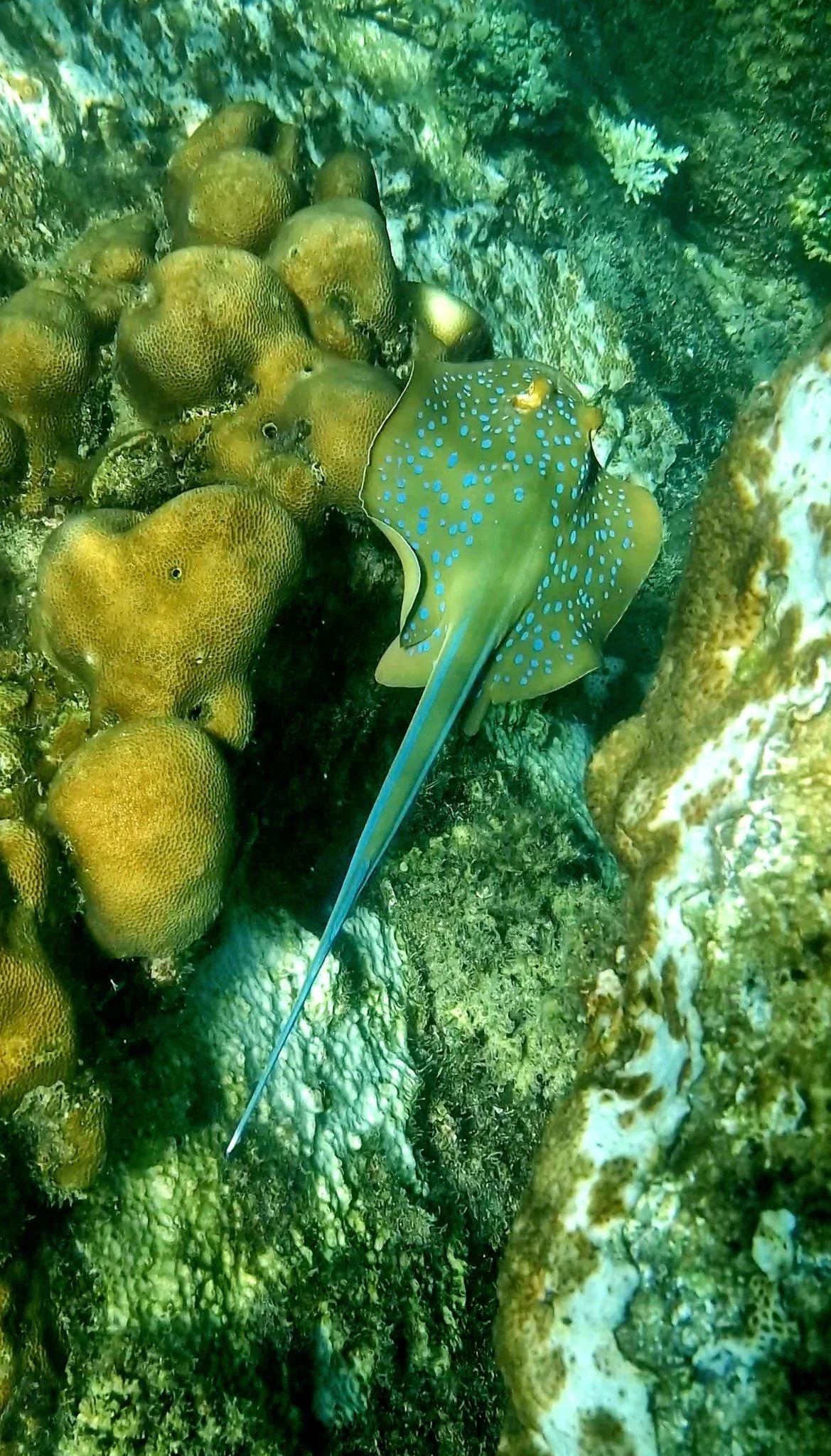 There are blacktip reef sharks and bluespotted ribbontail rays.