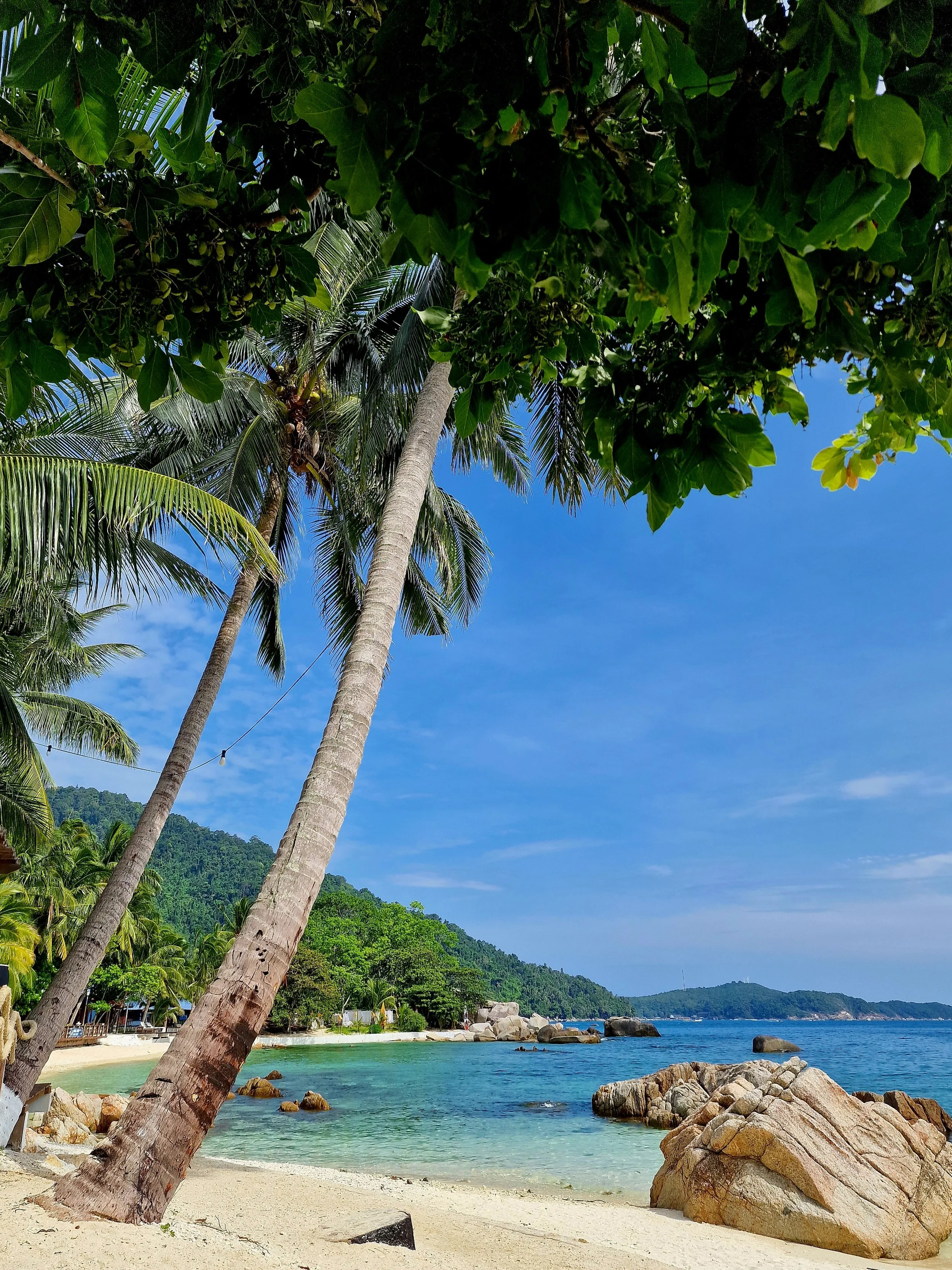 The beach itself, Teluk Pauh, is lovely and it was not too crowded besides being a very popular beach for boat tours and two big adjacent resorts. It is possible to wander through both PIR and Coral View Island Resort, even if you are not a guest. There are restaurants and bars to get food and drinks in between snorkel sessions. Inside the garden of PIR I could watch families of monkeys feeding on the fruit trees.