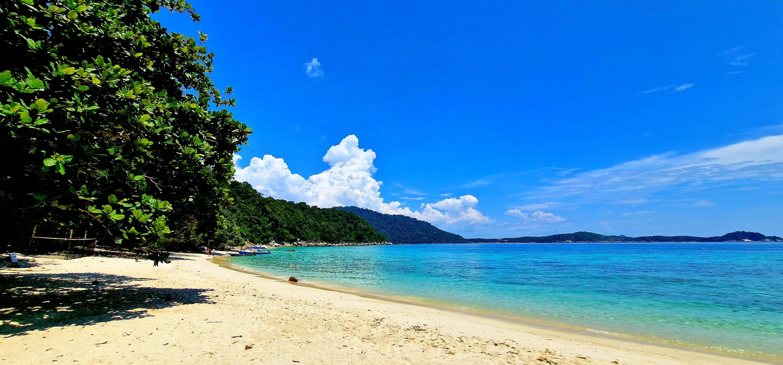 The Perhentians are a small group of islands in the South Chinese Sea, about 19 km off the shore from the Malaysian State of Terengganu and about 64 km from the Thai border. The islands belong to the Pulau Redang National Marine Park and are under protection. Two of the islands are inhabited – Kecil, the smaller island and Besar, the bigger one – while Susu Dara, Serenggeh and Rawa are uninhabited . The islands are the perfect tropical dream: covered in lush green jungle, surrounded by soft white sandy beaches and deep blue water full of marine life.